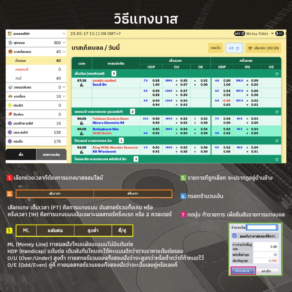 - แทงบาสขั้นต่ำ 10 บาทคี่คู่ โดยเลือกราคา 0.95