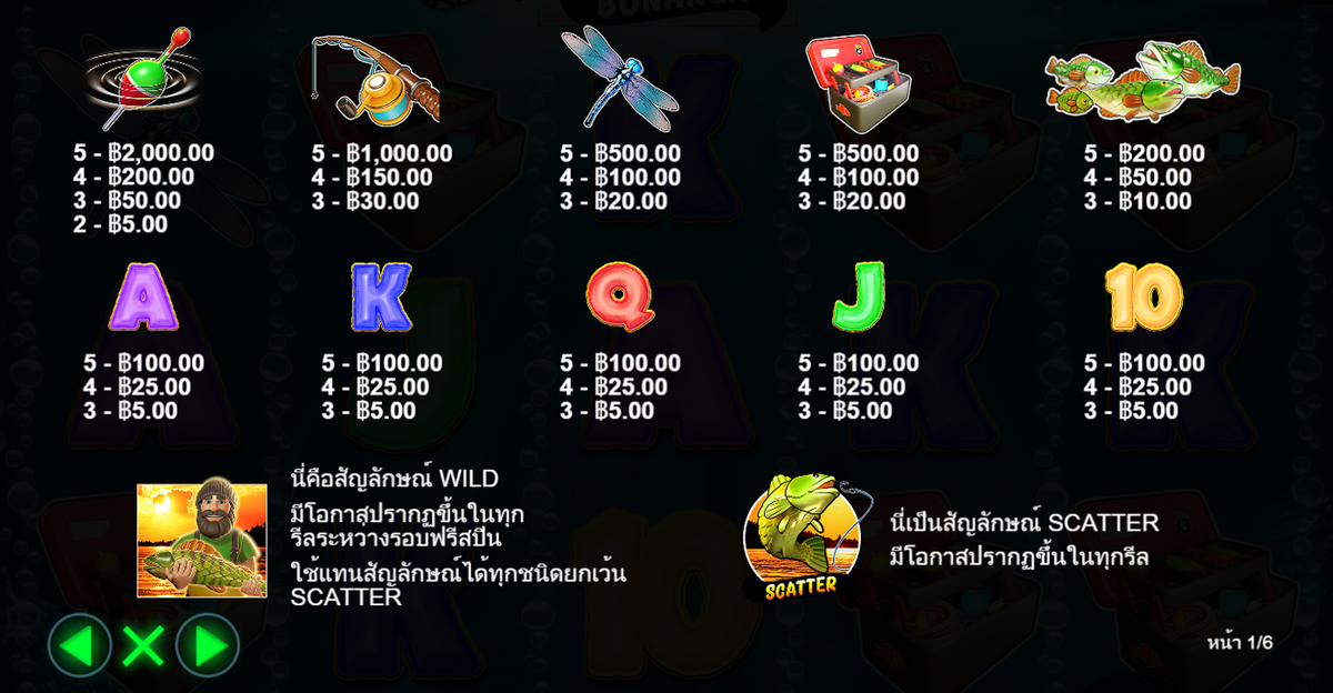 สัญลักษณ์ต่างๆของเกม BIG BASS BONANZA ค่าย Pragmatic Play