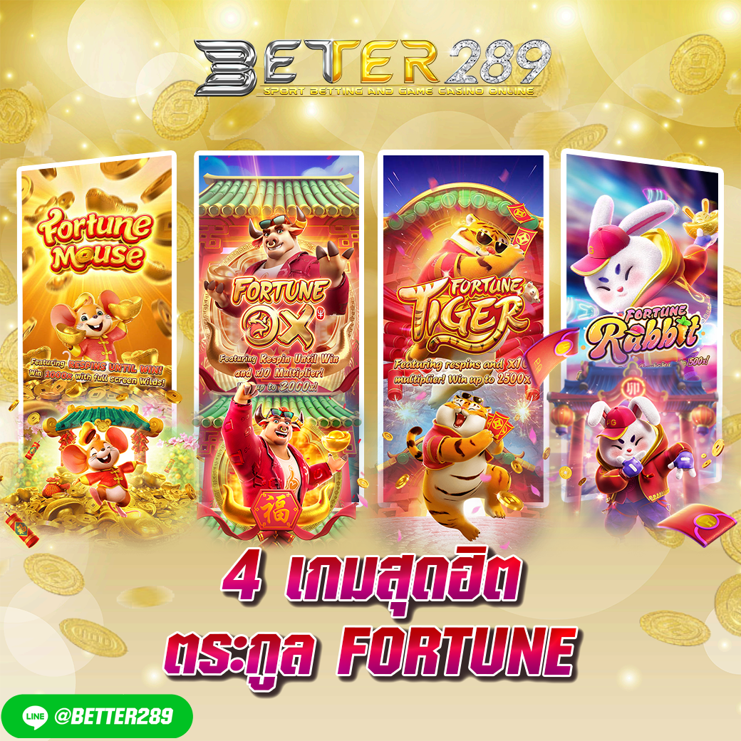 4 เกมสุดฮิตตระกูล FORTUNE จากค่ายสล็อตยักษ์ใหญ่ PG ที่เป็นค่ายที่มีคนรู้จักมากที่สุดในโลก ด้วยเกมของค่ายนี้มีเอกลักษณ์ที่น่าจดจำคือกราฟฟิกของค่ายเกมนี้มีกราฟฟิกภาพที่สวย น่าเล่น ระบบของค่ายลื่นไหล ไม่มีติดขัดหรือสะดุด จึงทำให้ค่ายเกม PG เป็นที่นิยมของเหล่านักพนันสล็อตออนไลน์ทั่วโลก โดยมี 4 เกมยอดฮิตที่ทาง BETTER289 ได้รวบรวมสถิติการเข้าเล่นมา คือ เกม FORTUNE OX เกมวัวทองสุดฮิตที่ครองใจนักพนันสล็อตออนไลน์มาอย่างยาวนาน เกม FORTUNE MOUSE เกมหนูที่อยู่คู่ค่าย PG ในช่วงยุคเเรกๆของค่าย เกม FORTUNE TIGER ที่อัตราการจ่ายเเพงเเละหลายคนบอกเป็นเสียงเดียวกันว่า เเตกดี จ่ายหนักมาก เเละสุดท้ายเกมน้องใหม่มาเเรง!!! FORTUNE RABBIT ที่เป็นเกมน้องใหม่ที่มาเเรงมากในช่วงนี้!!! เกมทั้งหมดเหล่านี้เป็นเกมที่เหล่านักพนันสล็อตออนไลน์ต่างนิยมเล่นเกมเหล่านี้เพื่อทำกำไรหรือลงทุน เพราะเกมเเตกง่าย จ่ายหนัก ก็ปฎิเสธไม่ได้เลยว่าในนาทีนี้ไม่มีใครไม่รู้จัก 4 เกมสุดฮิตของค่าย PG 4 เกมนี้เเล้ว!!!